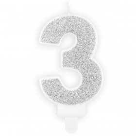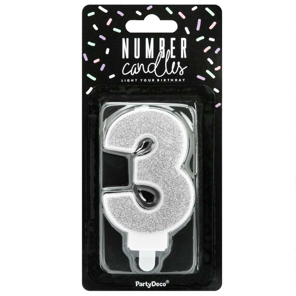 PartyDeco Bougie Anniversaire Chiffre 3 - Argent