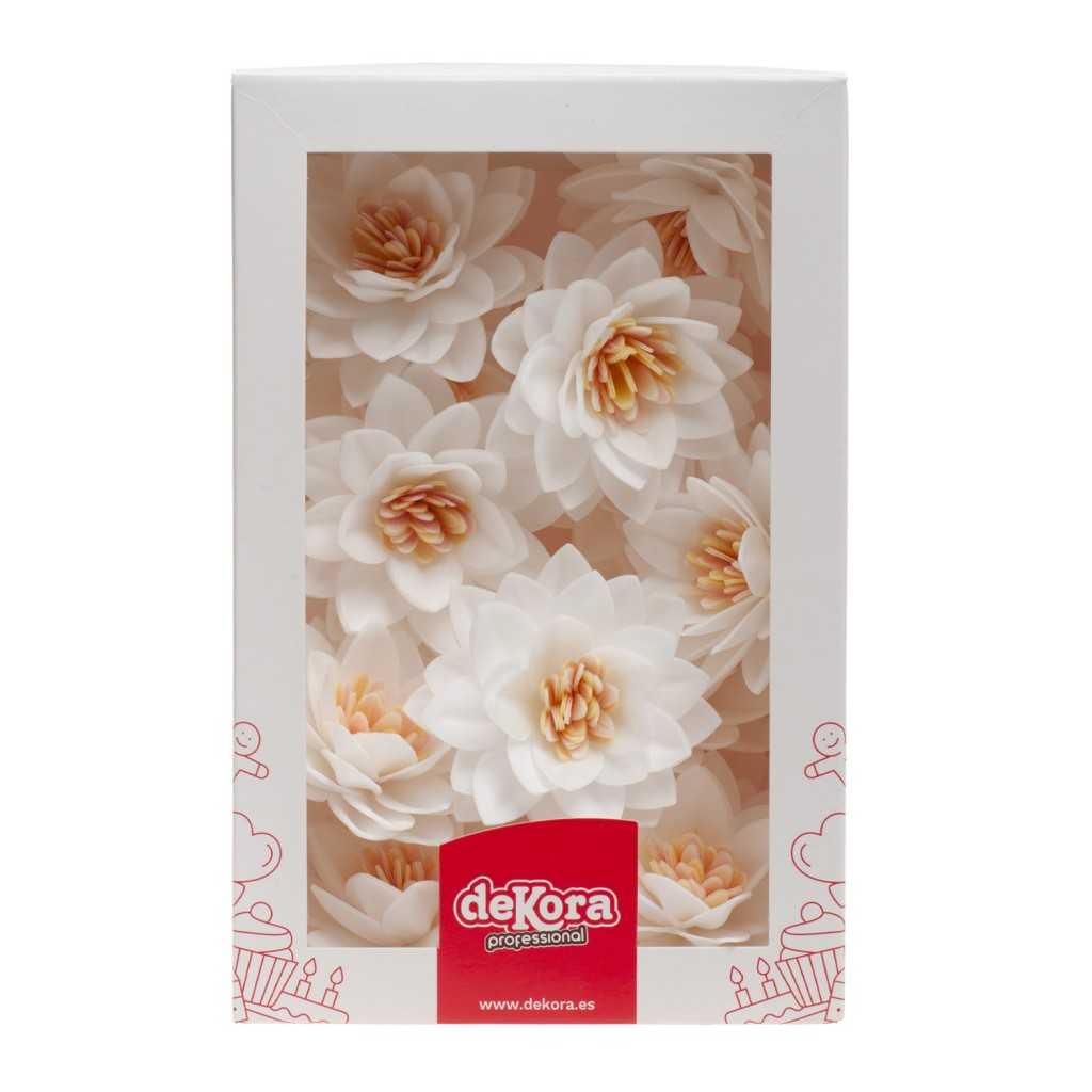 BOITE DE 15 FLEURS DE LOTUS EN AZYME BLANCHE Ø 7CM