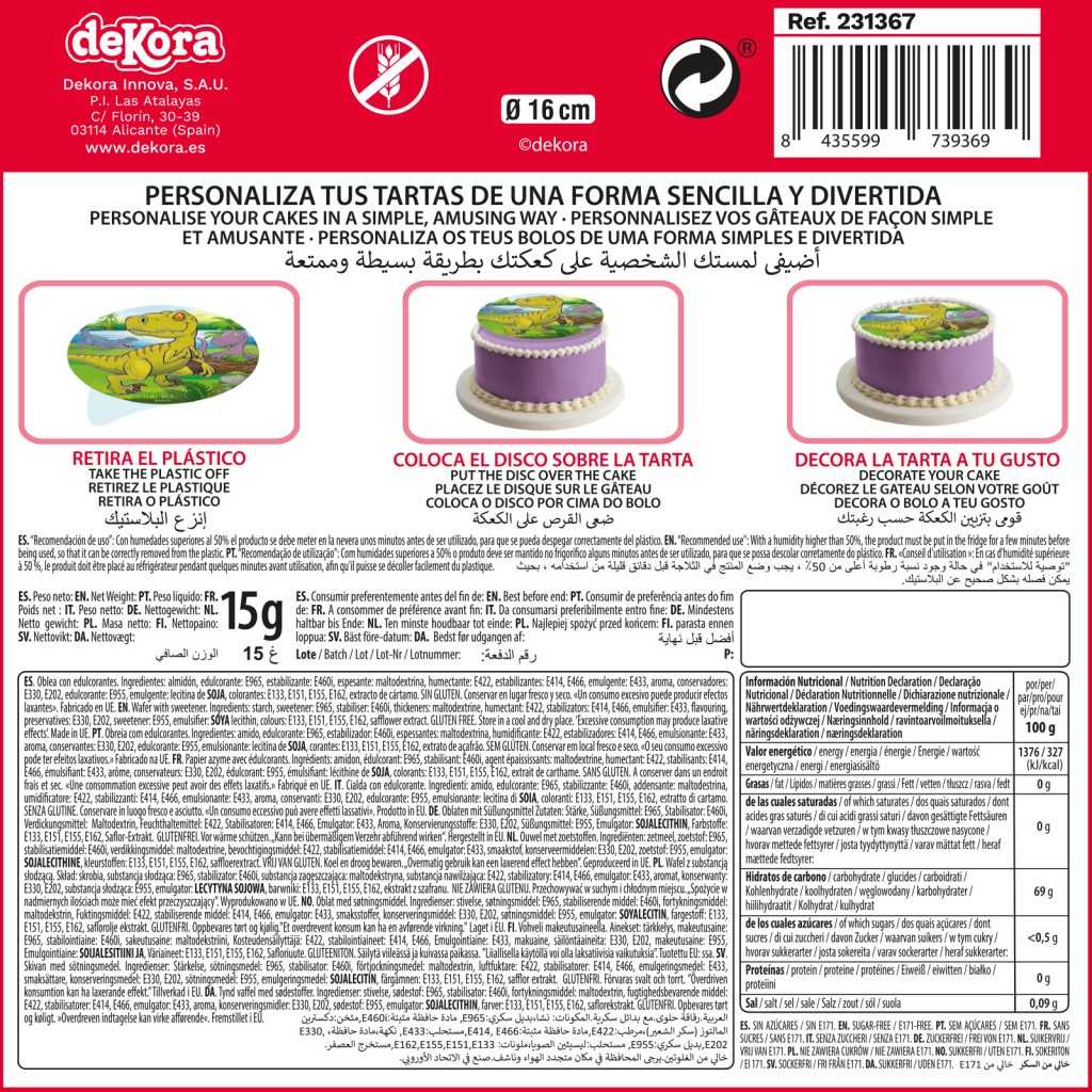 4. DISQUE COMESTIBLE DÉCO GÂTEAUX DINOSAURE 16 CM ZERO