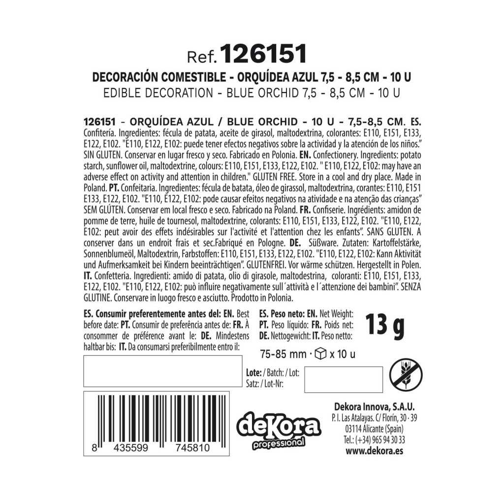 BOITE DE 10 ORCHIDÉES AZYME BLEU 8.5 -7.5CM